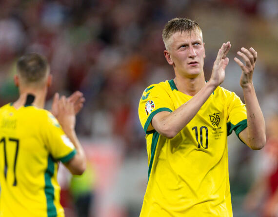 Lietuvos vyrų futbolo rinktinė sužaidė pirmąsias iš dvejų rungtynių kovojant dėl išlikimo UEFA tautų lygos C divizione.