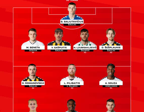 Linas Pilibaitis („Kauno Žalgiris“): Realizavęs baudinį mače su „Jonava“, L. Pilibaitis džiaugėsi ketvirtuoju įvarčiu šiemet. Žalgirietis 10 kartų pirmasis suskubo prie atšokusių kamuolių, taip pat – jų perėmė 11 bei laimėjo 65 proc. dvikovų (11/17).