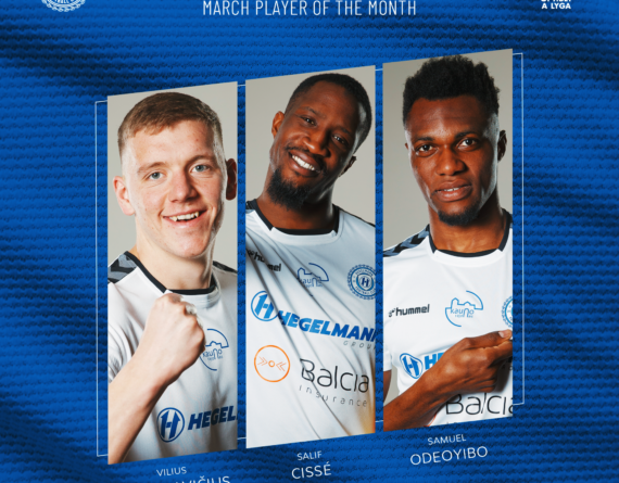 Mėlynai baltų kovo mėnesio žaidėju pretenduoja tapti – Vilius Armanavičius, Salifas Cisse ir Samuelis Odeoyibo.