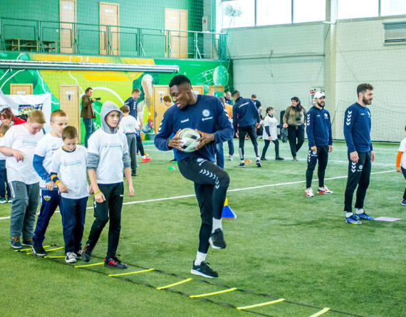 Pirmą kartą mėlynai balti šio judėjimo renginyje dalyvavo dar praėjusiame sezone. O štai praėjusią savaitę Kauno rajono futbolininkai į svečius priėmė beveik 100 vaikų iš įvairių šalies įstaigų.