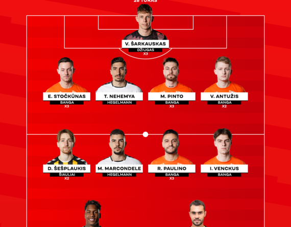 „Optibet A lygos“ 28-ojo turo rinktinėje daug vietų išsikovojo puikiai gynyboje besidarbavę Gargždų „Bangos“ atstovai.