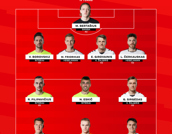 „Optibet A lygos“ 19-ojo turo simbolinėje rinktinėje trys futbolininkai joje atsidūrė jau penktą kartą.